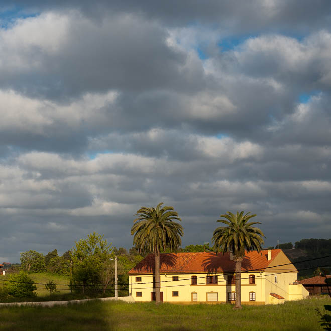 Ya al atardecer, divisé de lejos Casa Ángeles, en Perlora, Carreño, donde había estado una vez fotografiando las tallas de su magnífica panera (otro día).