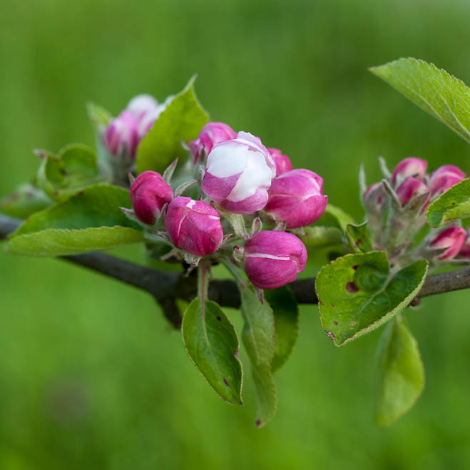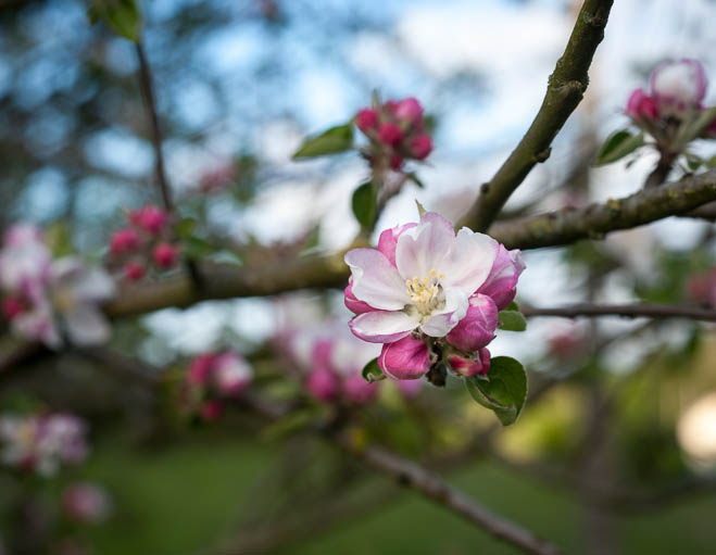 Hacía las nueve, pensando ya en volver a casa, me entretuve un rato haciendo fotos a las flores de un pequeño manzano.